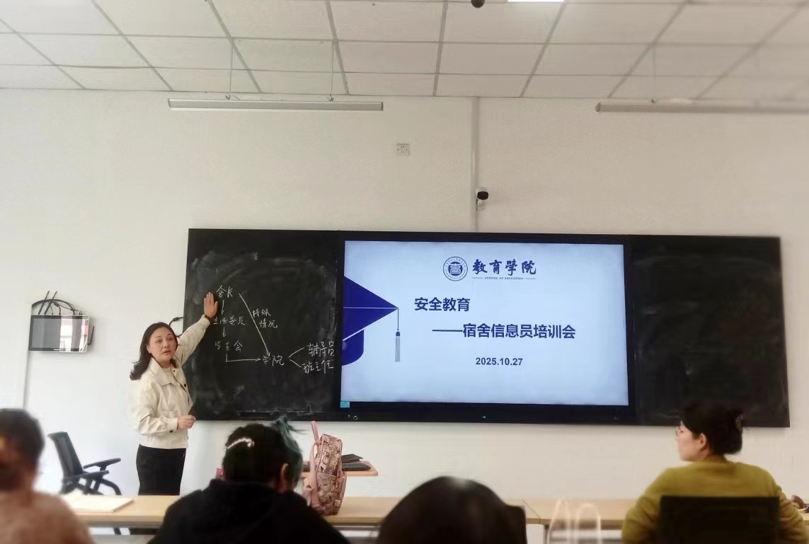 为进一步加强学生宿舍安全管理,提升新生安全防范意识与应急能力,10月27日,我院组织召开了新生宿舍信息员安全教育专题培训会。学院党委副书记徐瑾、新生班主任、辅导员及各新生宿舍信息员共同参加。