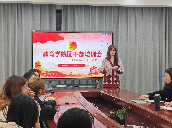 2025年11月27日,教育学院在教6-401会议室召开团干部培训会议。学院党委副书记徐瑾、院团委书记张洁、团委副书记薛颖、团委主席团及各部门部长参加会议。