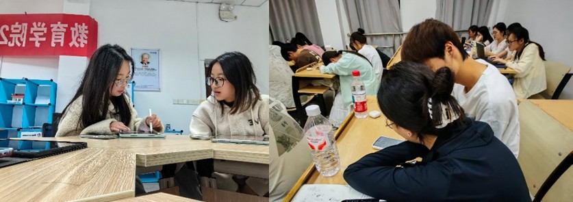 班级每月开展“云分享”:交流同学结合在南丹麦大学的课程学习与当地幼儿园观摩经历,系统拆解了当地特色教育模式:户外教育如何以“自然环境为课堂”开展感官训练,阶梯式学习怎样适配不同儿童的发展节奏,对话教学如何通过“平等提问”激发儿童表达,合作教育又如何借助不同教师的特色与擅长点进行多元教学。每场分享后,班级同步开展“理念落地小研讨”,将这些方法融入教案设计、手工实训等环节,比如在模拟授课中尝试“对话式引导”,在技能练习里加入“小组协作任务”。