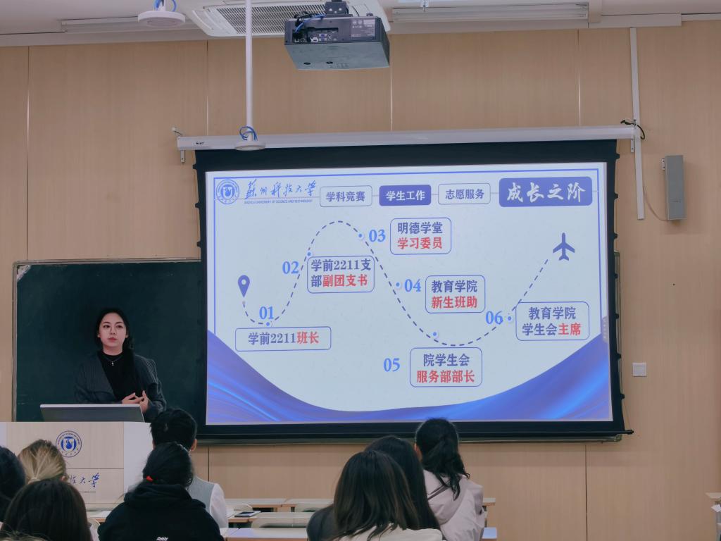 活动起始,新生辅导员张洁老师对本次宣讲活动进行简要介绍,并寄语全体同学,要以榜样为镜,明方向、知不足、补短板,在学习中锤炼本领,在实践中增长才干,将榜样的力量转化为前行的动力。随后学生代表们从学生工作、实践经历及学习方法等角度展开宣讲,鼓励同学们勇于探索,积极参加各种院校级活动。22学前专业濮芸学姐结合自身经历,分享了竞赛参与、学生工作与志愿服务等方面的体会,详细介绍了大学竞赛的重要性和必要性,强调应在竞赛中不断学习,全面提升自身能力;心理23级林枝同学则毫无保留地分享了自己的学习经验,为处于迷茫期的同学们提出合理建议,并提供有效学习方法,助力大家找到适合自己的学习路径。还有学生代表围绕“考研备考经”“跨学科学习方法”等热门话题进行了分享。整场宣讲活动内容充实,干货满满,为在场学子们留下宝贵经验。活动之后,不少同学受益匪浅,在各位学生代表的帮助下打开新思路。