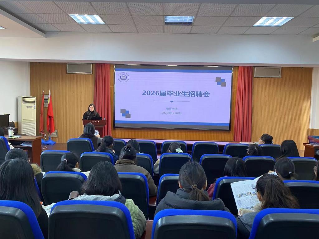 12月8日下午,教育学院在6-606教室成功举办了2026届学生校园招聘会。学院党委副书记徐瑾、多家企业代表、辅导员以及学院大三、大四年级学生代表共同参加了此次活动。