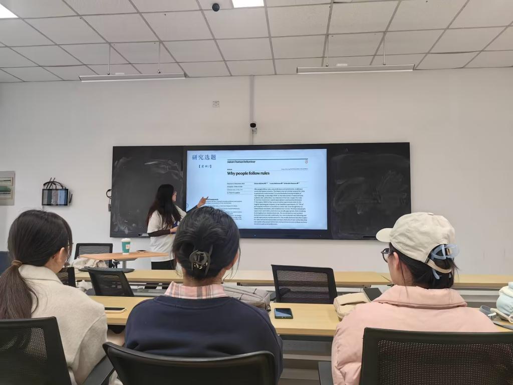 12月1日,教育学院明德学堂学术能力提升系列课程《心理学研究方法:选题与文献检索》在教六510教室开讲。此次课程以“研究选题创新与文献检索策略”为主题,由教育学院孙倩老师主讲,明德班23级应用心理学专业学生参与了本次教学活动。