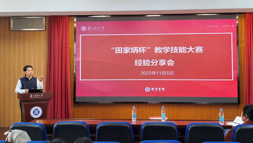 11月5日,我院在教六楼606会议室举办“田家炳杯”教学技能大赛经验分享会。会议邀请在2025年全国“田家炳杯”全日制教育硕士专业学位研究生心理健康教育教学技能大赛中荣获一等奖的王俪蒙、袁朝君同学,以及赛事优秀指导教师韦洪涛教授分享相关经验。学院党委书记丛春秋出席活动并与在场师生交流。