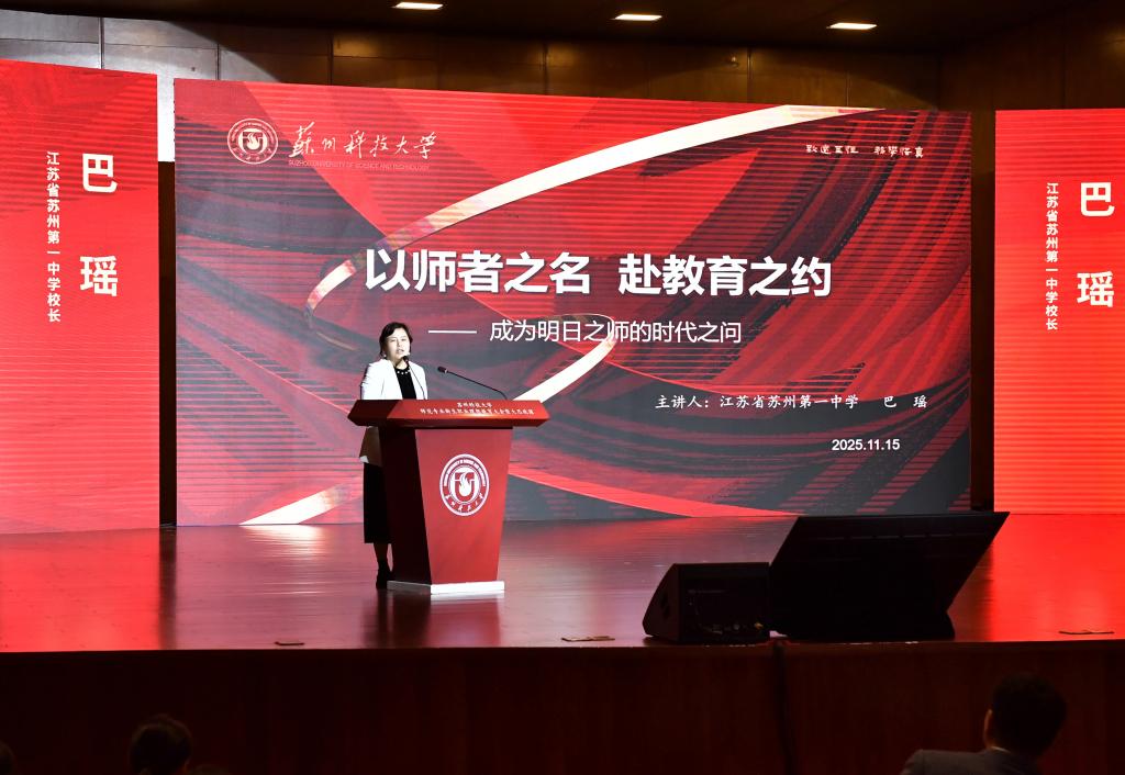 受聘导师江苏省苏州第一中学校长巴瑶,以“以师者之名,赴教育之约——成为明日之师的时代之问”为题,从“成长之路”“为师之道”“时代之问”三个维度,引导师范生思考“喜不喜欢教师职业”“准备做怎样的教师”“怎样成为合格的教师”,激励他们以“四有”好老师为目标,锤炼师德、提升学识、增强能力,做为学、为事、为人的“大先生”。
