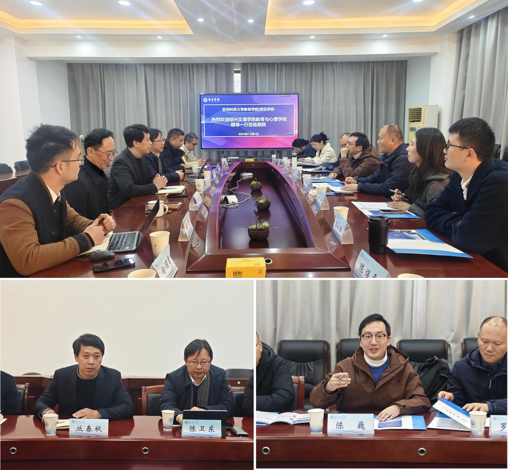 2025年12月3日,绍兴文理学院教育与心理学院院长陈巍、党委书记罗润锋带队,来我院开展专题考察交流活动。我院党委书记丛春秋、院长陈卫东、副院长邵爱国、副院长董波、教育学科带头人金生鈜教授、心理学系主任姚远、学前教育系主任张晋出席交流会。