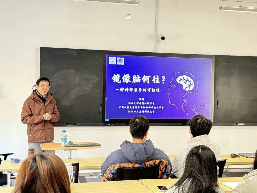 翌日上午,陈巍教授受邀做主题为“镜像脑何往?一种神经哲学的可能性”的学术讲座。讲座由心理学系主任姚远主持。陈巍教授从镜像神经系统的科学发现切入,系统探讨了其在认知神经科学与哲学交叉领域的理论进展与研究前景。通过回顾镜像神经元从实验观察到理论建构的发展历程,阐述其在理解人类共情、模仿与社会互动中的基础性作用,基于神经哲学的视角,剖析了“镜像脑”概念如何推动我们对心智、自我与他人认识论问题的重新思考,最后,陈巍教授结合其研究团队的最新成果,展望了该方向在未来精神健康干预、人工智能伦理以及文化认知研究中的潜在价值。学院副院长董波对讲座内容进行总结,并呼吁同学们保持对学术的热爱,在学术中找到自我,保持自我,感悟“我们”。此次讲座得到了学院师生的热情响应,现场交流氛围浓厚,互动频繁,充分体现了教育学院对心理学前沿领域的深入关注和科研探索的活力。