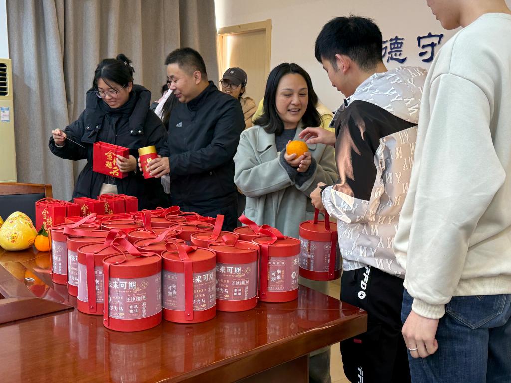 两场活动中,学院为考研学子准备了情意满满的“慰问大礼包”,并特别送上橙子与柚子。橙子寓意“一战‘橙’硕”,柚子象征“柚”见好运。这些满载美好祝愿的礼物,承载着学院师生对考研同学的殷切期望与真诚祝愿。