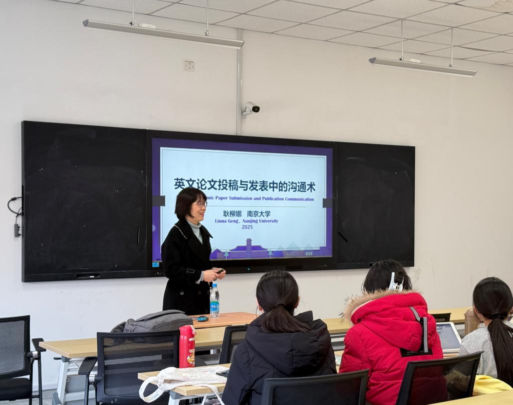 2025年12月19日,南京大学社会学院耿柳娜教授应邀来我院,为师生作题为《言之有物,行之有效:英文论文写作与发表沟通术》的学术报告。本次讲座由陈艾睿老师主持,学院硕士研究生和青年教师参加了本次讲座。