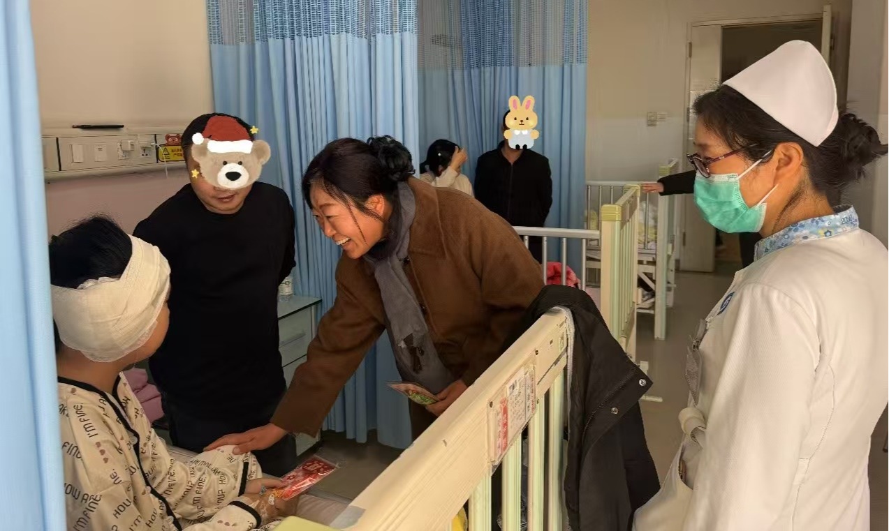 座谈结束后,党员师生在医护人员的引导下走进病房,为孩子们送上精心准备的新年小礼物。可爱的小马玩偶、漂亮的小马发箍、寓意吉祥的福字贴,瞬间点亮了孩子们的眼眸,病房里响起阵阵清脆的道谢声。