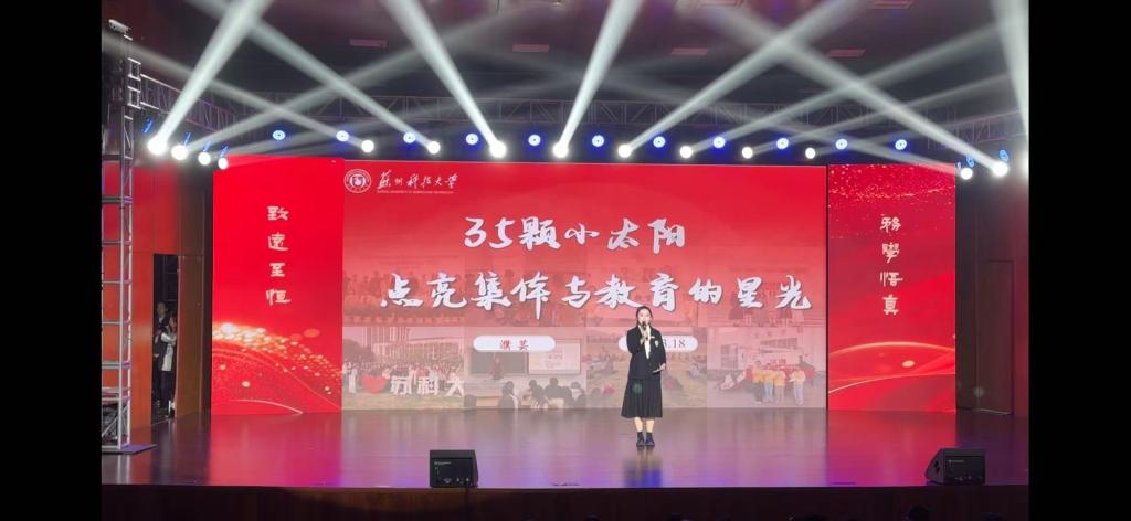 3月18日下午,2025年度苏州科技大学优秀学生表彰大会在石湖校区音乐厅举行。教育学院学前师范2211班作为校先进班集体标兵接受表彰。班长濮芸以《35颗小太阳,点亮集体与教育的星光》为题作大会交流分享。
