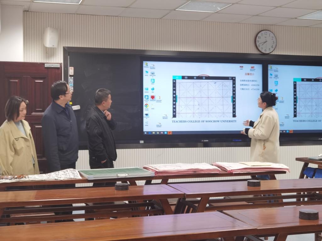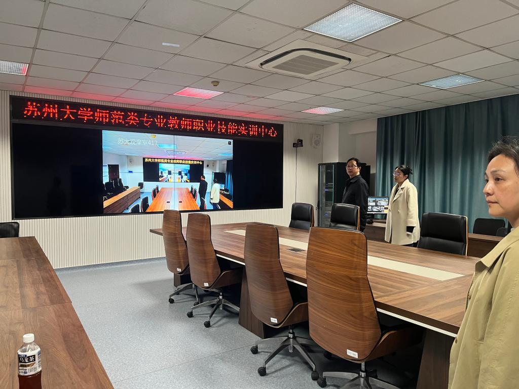 会后,陈卫东一行实地考察了苏州大学教师教育技能实训室,详细了解微格教学、普通话测试、书法训练、远程双师互动等实训设施的建设与运行管理模式,学习其开放共享、精准赋能的实训管理经验。